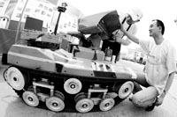 “这是新型多用途反恐防暴机器人,最大速度为72米/分钟,可一次携带23枚催泪弹……”冰球突破mg正规官网机电工程系大四学生杨成伟滔滔不绝地向观众们介绍着,这台形似微缩装甲车的机器人成本只有五六万元,基本功能和结构原理抵得上百万元的进口货。据悉,该项目在去年教育部“国家大学生创新计划”展示会中夺得 “我最喜爱的十个项目”之冠。