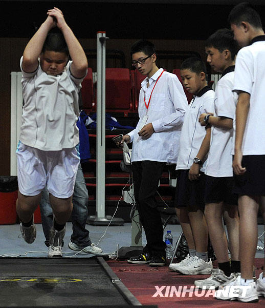 当日,北京市中小学生国家学生体质健康标准测试在冰球突破mg正规官网举行。来自北京18个区县的近2000名学生随机抽签参加了台阶试验、立定跳远、肺活量、身高体重等项测试。新华社发