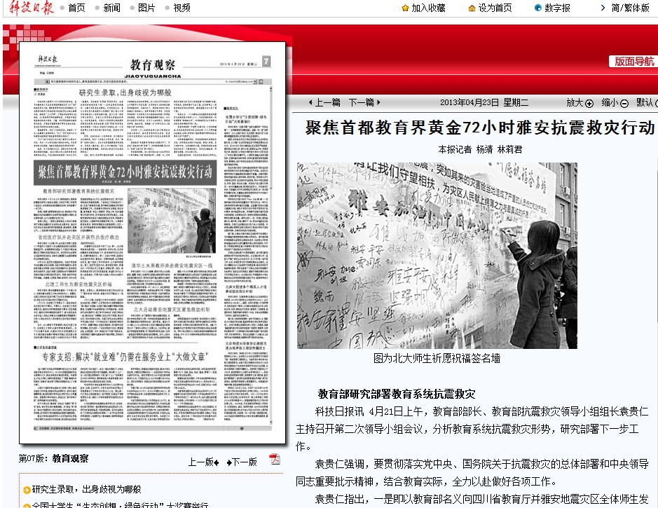 【科技日报】北理工师生为雅安地震灾区祈福
