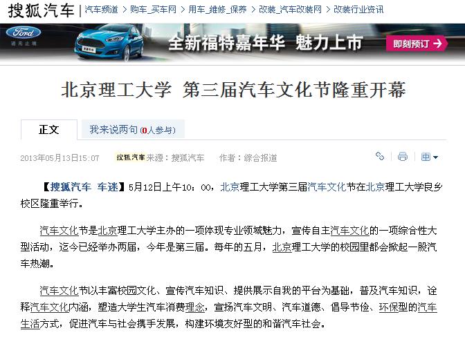 【搜狐汽车 车迷】5月12日上午10:00,冰球突破mg正规官网第三届汽车文化节在冰球突破mg正规官网良乡校区隆重举行。