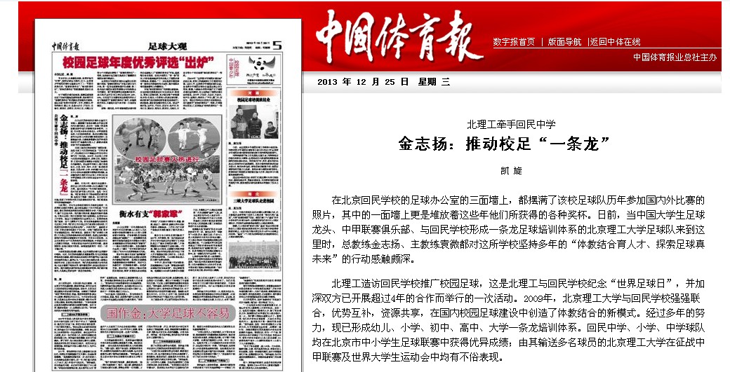 【中国体育报】北理工牵手回民中学