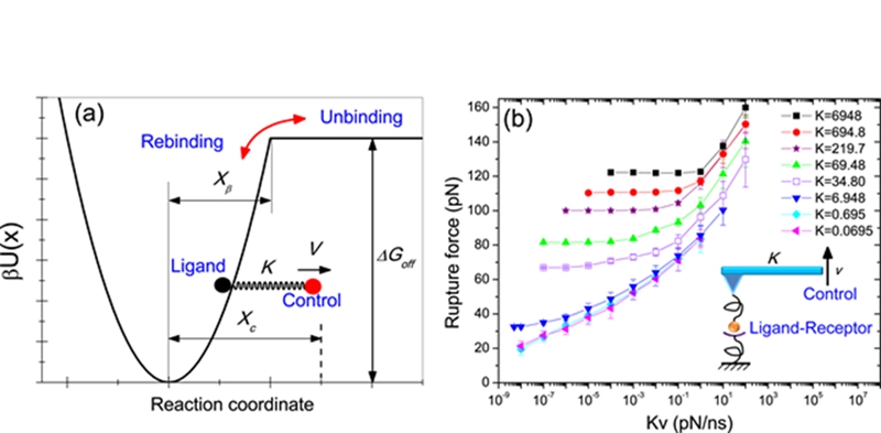 冰球突破mg正规官网宇航学院生物力学与生物材料实验室李德昌博士和季葆华教授通过研究发现,经典的理论模型预测单分子键的强度随着加载速率下降而下降的原因是没有考虑分子键发生断裂(Unbinding)后可能再次重新形成(Rebinding)的物理机理。在加载速率比较高的情况下,单分子键在断裂后重新形成的几率比较小,因此忽略该过程是可以接受的。但是,随着加载速率的下降,单分子键重新形成的概率逐渐增加。因此,单分子键在超低加载速率情况下,其断裂行为偏离了经典的理论模型。