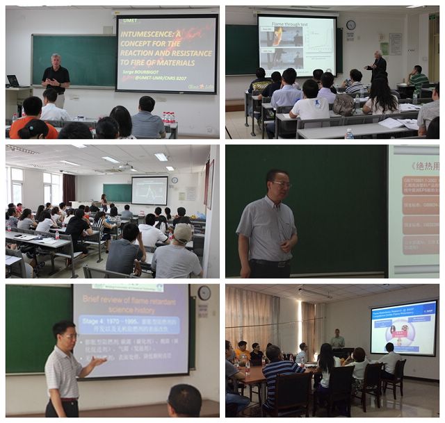2014年,冰球突破mg正规官网材料学院、国家阻燃材料工程技术研究中心和阻燃科学与技术国际联合实验室成功主办了2014年国家阻燃材料工程技术研究中心国际学术论坛,诚邀法国里尔大学国立工程化学研究院的Serge Bourbigot教授、Gaëlle Fontaine博士、德国巴斯夫公司阻燃材料研发主管Martin Klatt博士、都灵理工大学Giovanni Camino教授、北京化工大学张胜教授等诸多阻燃领域国内外的专家及相关研究人员,举办了系列讲座十二场,探索解决阻燃关键问题的新想法、新概念和新办法,就新型阻燃剂设计、膨胀阻燃新概念、聚合物阻燃新趋势、阻燃测试分析等内容进行讨论,为建造一个讨论阻燃前沿问题的平台奠定了基础。