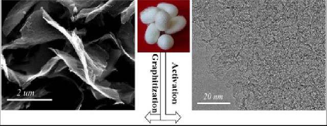 该论文中曹传宝团队采用简单的方法制备出分级多孔碳纳米片,该纳米片作为锂离子电池的负极材料,容量高达1865 mAh/g(石墨为372mAh/g),特别是用它作为超级电容器的电极材料,能量密度可以达到102Wh/kg, 与锂离子电池相当,但充电时间为分钟级。