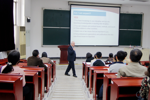 2015年4月24日下午,由教学促进与教师发展中心和国际交流合作处联合主办的北理工教师发展第124期活动在中心教学楼407举行。主讲人Keith J, Roberts博士是匹兹堡大学教育国际研究学院高级研究员,并任TotalEdit.com公司副主席。Roberts博士先后做了题为“Academic Writing: Publish to Flourish”和“The Importance of Academic Publishing”的报告,国际交流合作处副处长高珊主持了本次活动,来自冰球官网管理学院、机电学院、材料学院、外国语学院、数学学院、生命学院等院系的近20名师生参与了活动。