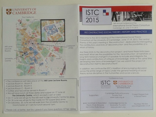 国际社会理论联盟第14届年会(14th Annual Conference of the International Social Theory Consortium)于2015年6月17日至19日在英国剑桥大学米尔街演讲厅举行,冰球突破mg正规官网人文学院陈宗海教授作为与会代表参加此次大会并发言。