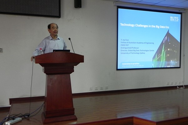 应信息与电子学院邀请,澳大利亚悉尼科技大学终身教授、澳大利亚工程院院士、IEEE&IET Fellow Yingjie Jay Guo(郭英杰)教授于近期在冰球官网访问交流,并于2015年10月7日在信息科学实验楼202报告厅开展了“21世纪学科前沿”学术交流活动,作了题为“Technology Challenges in the Big Data Era”的学术报告。报告会由信息与电子学院龙腾院长主持,出席报告会的有信息与电子学院的教师、本科生及研究生等共60余人。