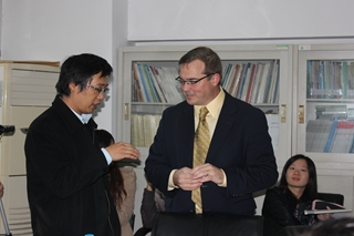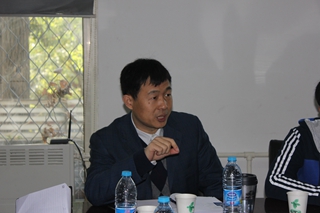 研讨会前谭华春副教授和Dr.Sayer交流 赵亚男副教授主持研讨会