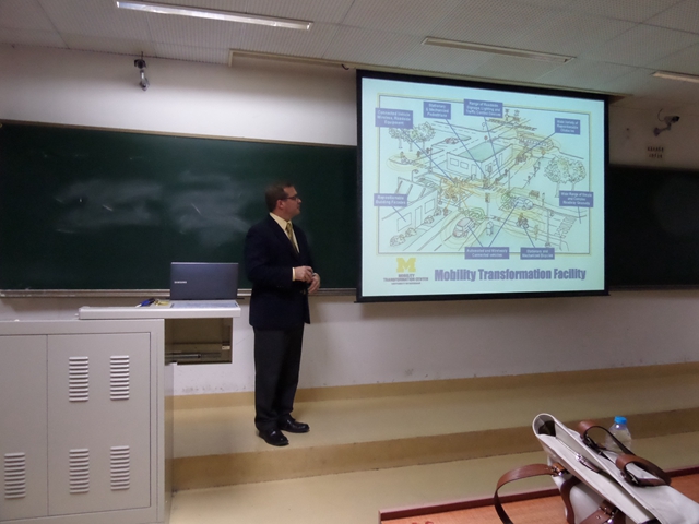 10月23日,应机械与车辆学院交通工程系的邀请,美国密歇根大学交通运输研究所的James R.Sayer与交通工程系教师、研究生进行了学术交流,并面向全校师生作了题为“Connected and Automated Vehicles: Moving Toward Deployment”的学术报告。