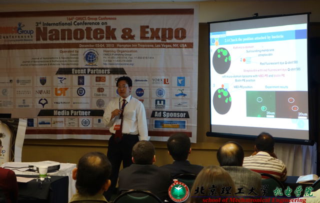 2013年10月8日至12日、12月1日至6日,北理工机电学院张振海副教授应邀出席在中国上海、美国拉斯维加斯举行的 “第四届微纳米技术国际会议”和“第三届纳米科技国际学术会议”,受邀国际会议Keynote主旨报告并担任技术分会主席。本次国际会议的举行为研究者和工程师们提供了展示最新研究成果和相互交流的平台。