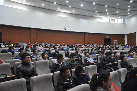 2013年12月22日下午1点45分,由计算机学院金旭亮老师为2013级计算机新生做的专业教育讲座-IT风云录(上)在良乡校区综合教学楼报告厅顺利举行。在同学们热烈的掌声中,讲座正式开始,金旭亮老师开始了与同学们的故事交流会。本次讲座的目的是为了让计算机学院的新生了解这三十年计算机的发展和IT英雄们的故事,激发学生对本专业学习的热情。