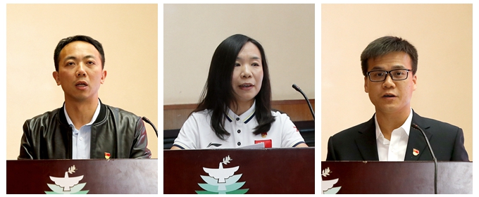围绕主题教育要求,为强化正面典型的宣传引导,发挥榜样示范作用,开展好爱国主义教育,会议首先由在国庆70周年庆祝活动中作出突出贡献的集体代表做典型发言。机械与车辆学院青年教师、国庆阅兵某方阵发动机北理工保障队队长崔涛,计算机学院“数字表演与仿真技术北京市重点实验室”团队青年教师黄天羽和法学院党委副书记、副院长,学校国庆游行方队行进指挥长、组织训练处副处长马晓龙分别代表所在集体介绍了在服务国庆重大活动中的经历和感想。以他们为代表的北理工广大师生在庆祝活动中用实际行动传承了学校“延安根、军工魂”的红色基因,以矢志报国、勇担重任的突出业绩,展现出了北理工人的“时代担当”。会议号召广大党员干部主动向身边典型榜样学习,立足本职工作岗位,进一步加强和改进作风,为学校“双一流”建设作出新的贡献。
