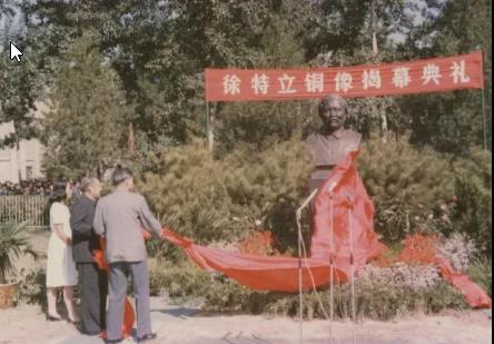 1986年9月,时任中共中央书记处书记习仲勋(中)和北京工业学院院长朱鹤孙(右),共同为在冰球官网中心花园落成的徐特立铜像揭幕,该铜像由自然科学院校友和广大师生共同发起倡议,经中央批准后建立